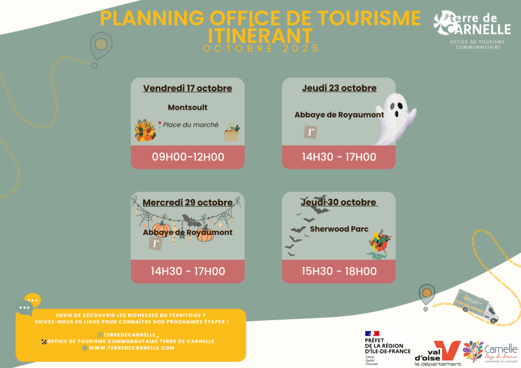 L’Office de tourisme communautaire terre de Carnelle prend la route avec son véhicule itinérant ! Grâce à ce nouvel outil mobile, nous sillonons les communes du territoire pour vous informer, vous inspirer et vous faire (re)découvrir les trésors locaux.