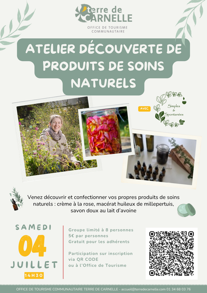 Venez découvrir et confectionner vos propres produits de soins naturels : crème à la rose, macérat huileux de millepertuis, savon doux au lait d'avoine.