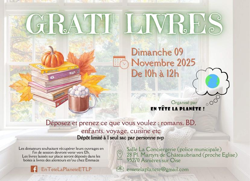 Partagez le plaisir de lire ! Venez déposer et choisir librement des romans, BD, livres de voyage, cuisine ou pour enfants. Un moment convivial pour donner une seconde vie à vos livres et faire de belles découvertes littéraires.
